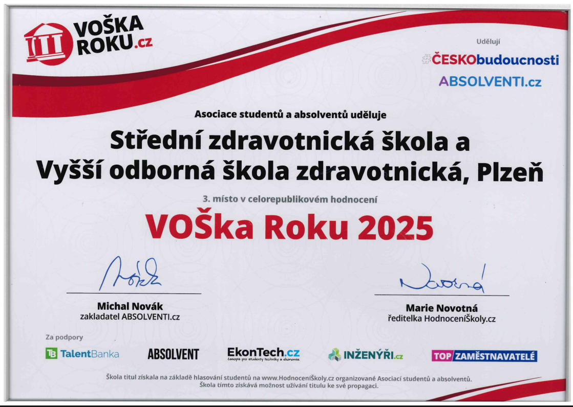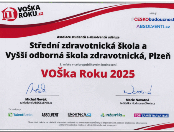 Střední zdravotnická a Vyšší odborná škola zdravotnická Plzeň, Karlovarská 99 získala 3. místo v rámci celorepublikového hodnocení VOŠka roku 2025