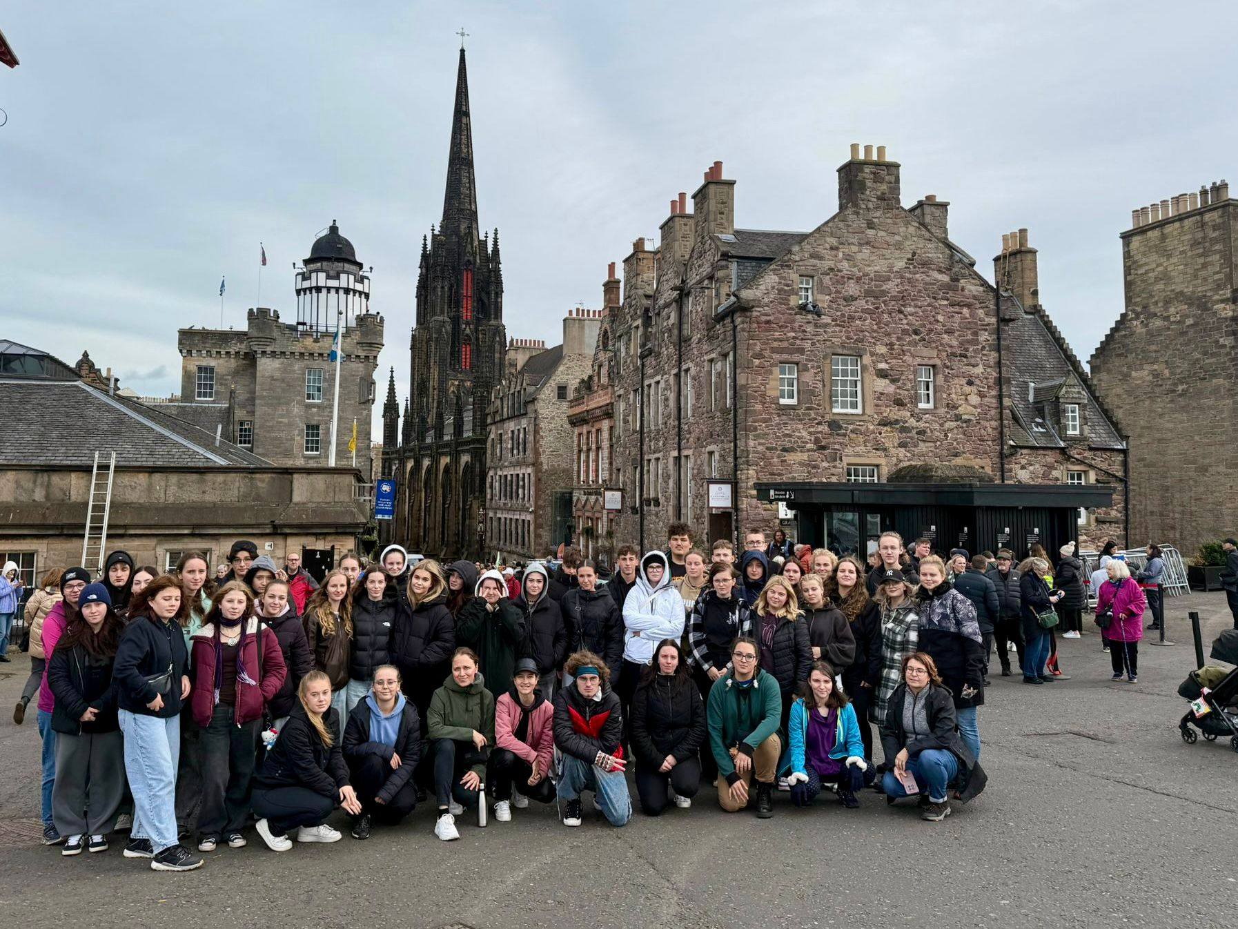 V pondělí 6. října brzy ráno jsme se vydali vlakem do Prahy a poté dojeli autobusem a metrem na letiště Václava Havla. Paní průvodkyně na nás čekala na letišti, rozdala nám elektronické letenky a za chvíli jsme všichni seděli v letadle. Pro některé to byl první let v životě. Po hladkém přistáni na letišti v Edinburghu jsme se vydali vstříc skotskému venkovu, kde jsme navštívili dvě středověká opatství Dryburgh Abbey a Melrose Abbey. Den jsme zakončili náročným výšlapem na krásné vyhlídkové místo na Arthur’s Seat. které se tyčí nad hlavním městem Skotska – Edinburghem. Ve večerních hodinách nás, zcela vyčerpané, autobus dovezl na ubytování do městečka Stirling.